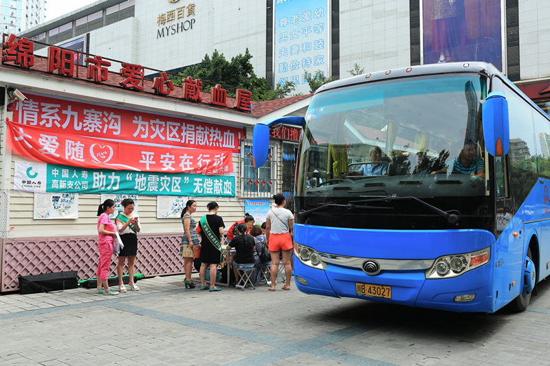 8月11日早上8點30分,獻血人員滿懷激情,乘坐公司大巴車,分別前往綿陽市中心獻血點和公園路愛心獻血屋,擼起袖子為九寨溝傷員獻熱血,助力災區共渡難關。