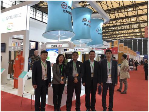 46日至8日,第94屆中國勞動保護用品交易會在上海新國際博覽中心召開,我公司聯手賽歐蘭、上海特安綸、鄭州四棉和江蘇奧神共同布置了“高性能阻燃纖維及制品企業聯合展”展臺,主要展示了我公司艾弗瑞無鹵阻燃樹脂及阻燃抗熔滴聚酯織物等系列產品。阻燃材料事業部總經理梁倩倩、研發經理江涌等參加了展會。展會期間,董事長于少波和總經理曹學蒞臨現場指導工作。