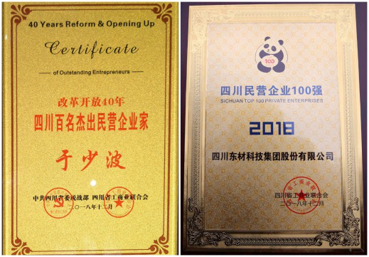 熱烈祝賀東材科技黨委書記、董事長于少波榮獲“改革開放40年四川百名杰出民營企業(yè)家”光榮稱號(hào)